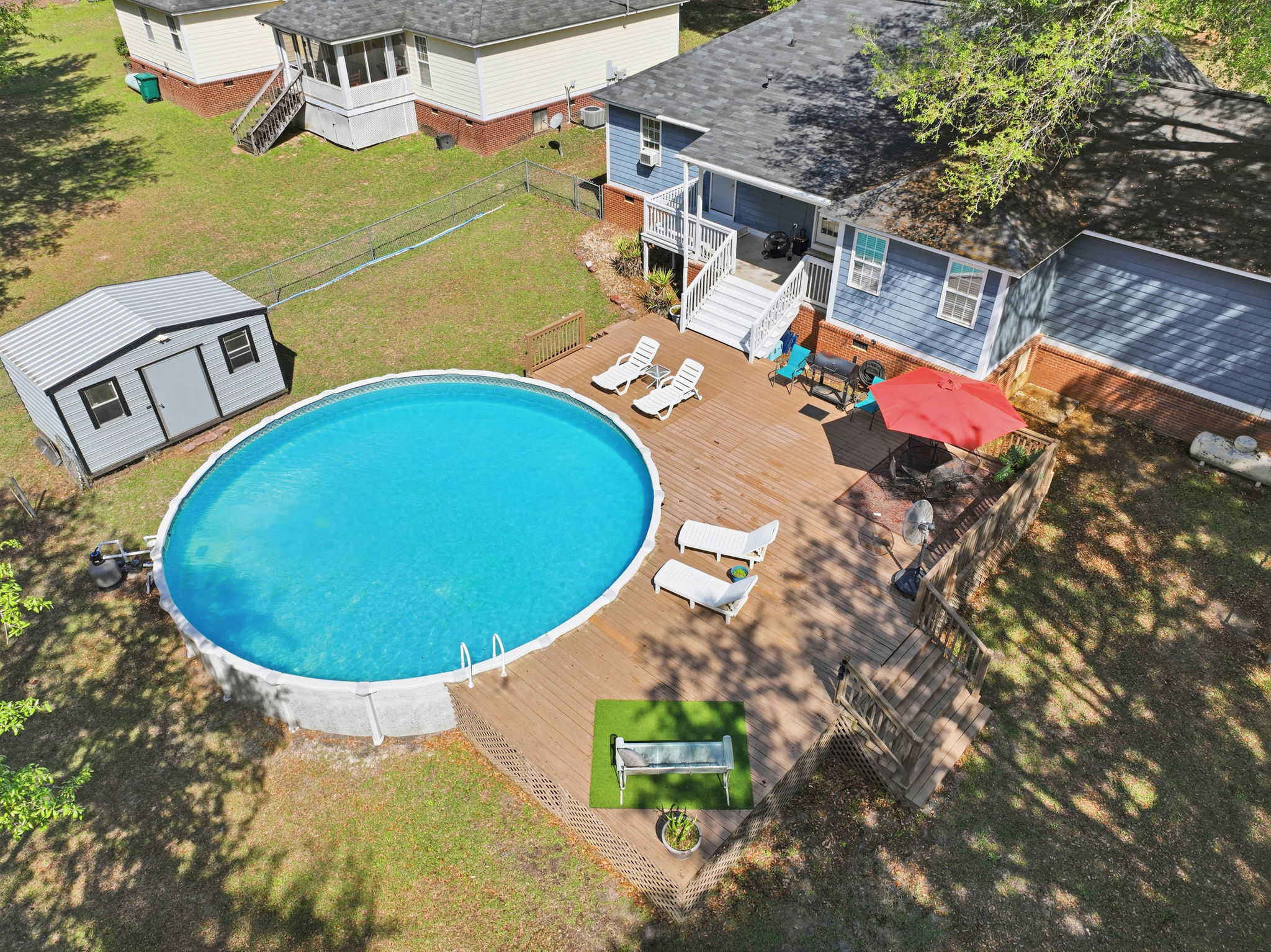 Step outside and experience what truly makes this property special—a spacious backyard designed for both relaxation and recreation. The large deck and private pool create the perfect setting for entertaining, summer gatherings, or simply unwinding in the sun. Beyond the deck, the property overlooks a beautiful, expansive lake, offering peaceful views and endless opportunities for outdoor enjoyment, from fishing and kayaking to quiet evenings by the water. With plenty of space to spread out and enjoy nature, this home delivers a lifestyle that blends comfort, activity, and serenity in one inviting setting.