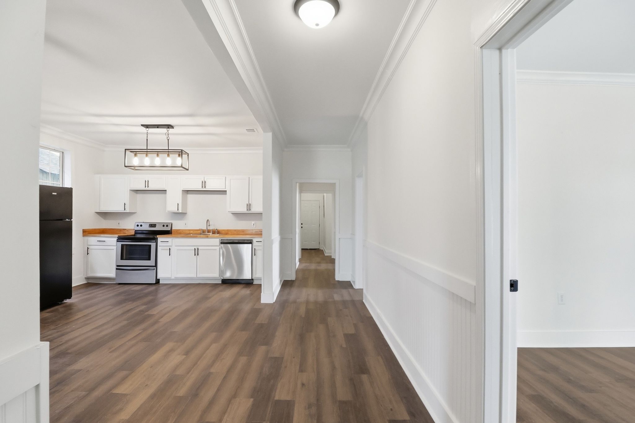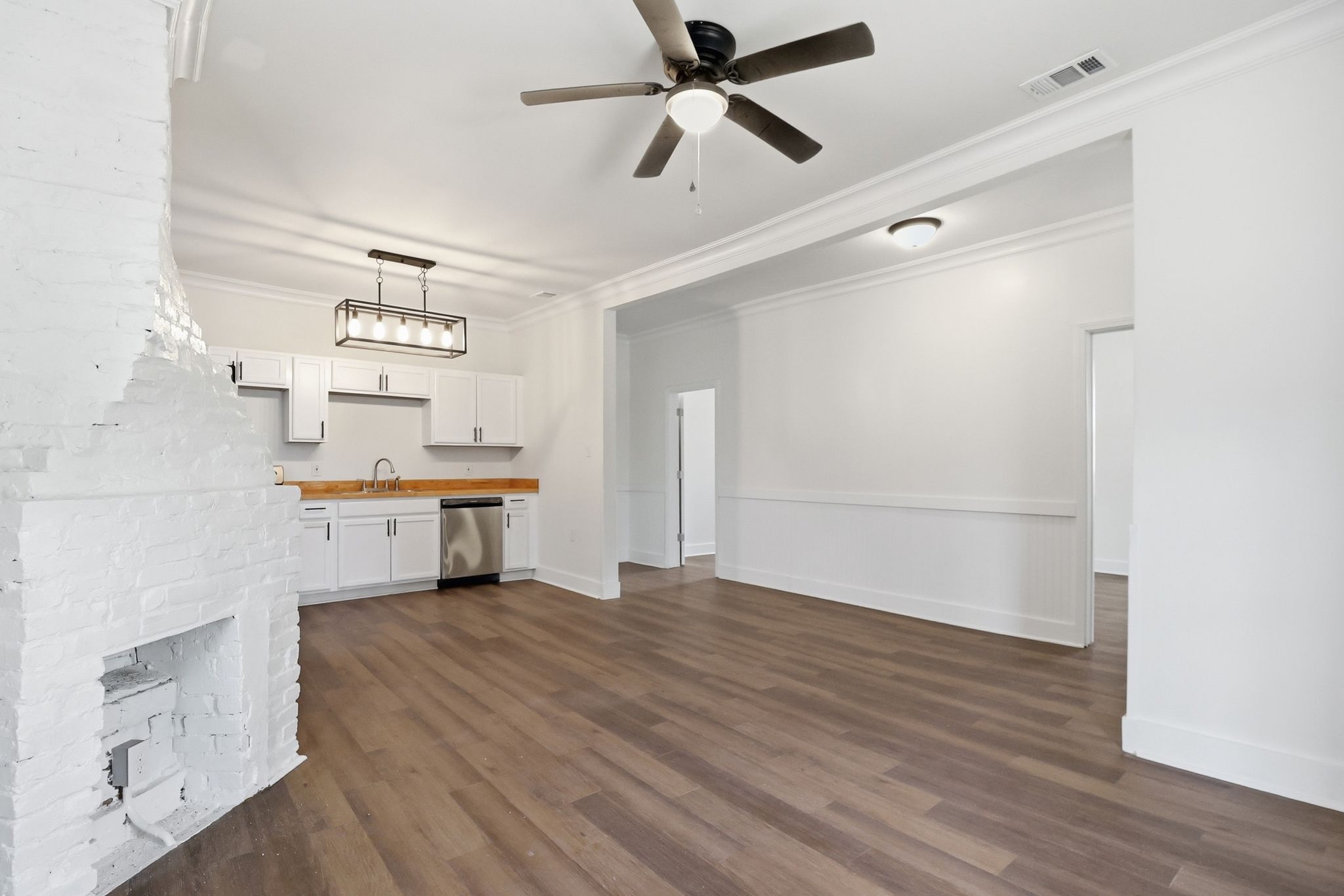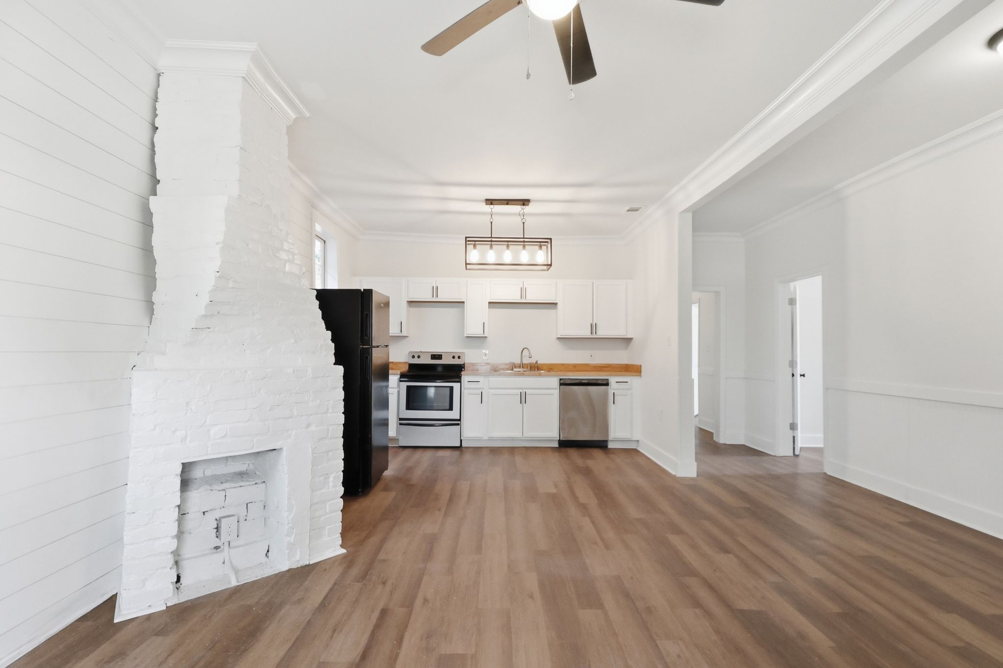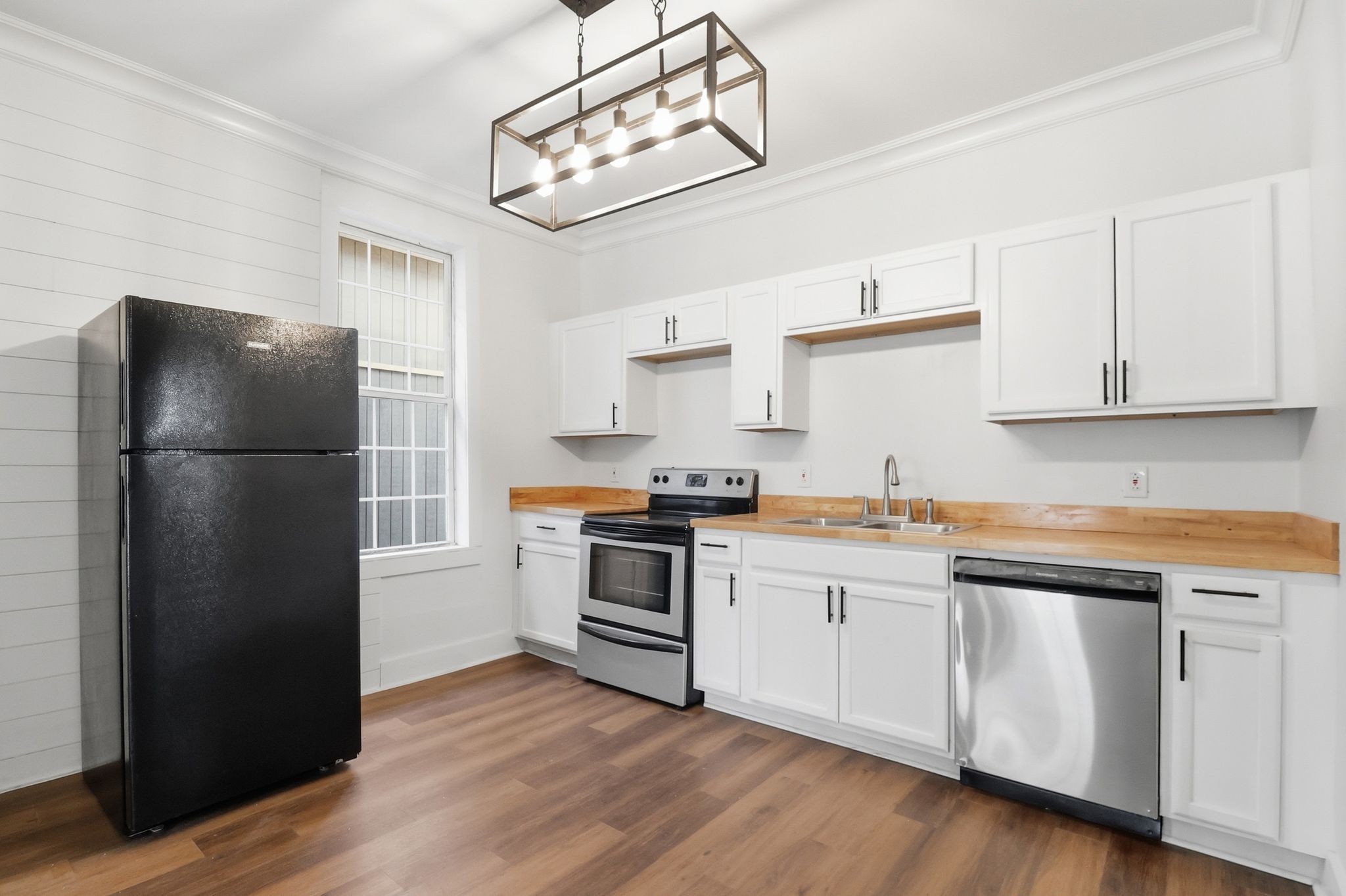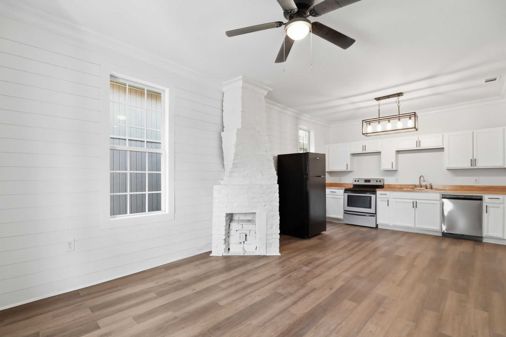Inside the home, there is a clean, modern feel while maintaining the character of a classic Savannah property. The layout offers four spacious bedrooms and two full bathrooms, providing flexibility for families, roommates, or rental occupants. The large kitchen serves as the centerpiece of the home, featuring updated finishes, ample cabinet space, and room for entertaining. Throughout the property you’ll find thoughtful design details, updated fixtures, and finishes that create a bright, comfortable living environment. The generous bedroom sizes and smart layout maximize the home’s 1,350 square feet, making the space feel both functional and inviting for everyday living.